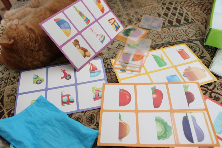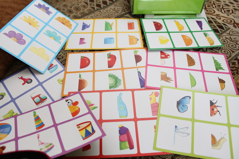 Оно разноплановое. в Половинки даже старший иногда играет, и Феде пока интересно. Блокнот Дима раскрашивает, но мыс ним симметрию активно обсуждаем . И даже половинки карточки есть симметричные жук, а есть нет - улитка и т.п. Оборотные стороны карточек тоже пока только с Димой задействовали. Так что оно долгоиграющее. Не нравится мне только, что карточки соскальзывают с полей не лежат, старшего бы в трёхлетнем возрасте бесило бы и игра скорее сего вообще бы не пошла. Федя терпимее. Сейчас фото добавлю для наглядности.