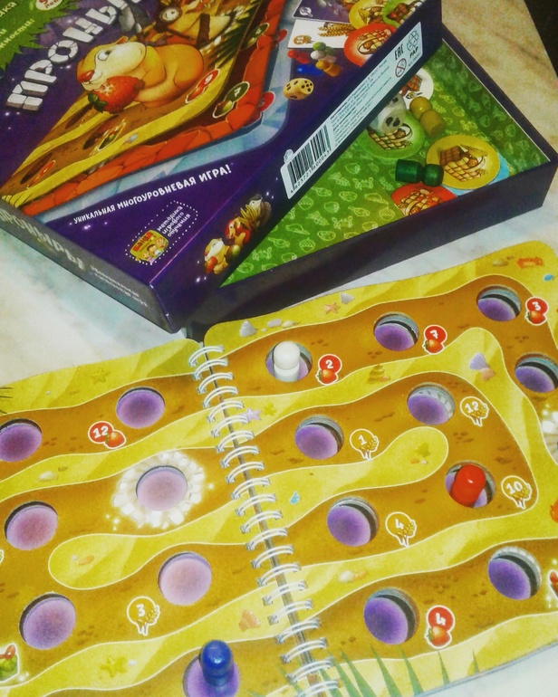 2. Если играть с детьми, которые уже считать умеют. Им, понятно, сам счет неинтересен, решение задачи должно двигать к победе, поддерживая интерес к игре. Но тут другой недочет: в каждый момент игры ты не понимаешь, обгоняешь соперников или нет. Плюс выбор в игре хоть и присутствует, но либо очевидный (взять припас подороже), либо с непонятным исходом (когда двигаешься между страницами или просто передвигаешься по полю после нерезультативного хода). Т.е., вы правы, получается самая простая ходилка... за 1 500 рублей
