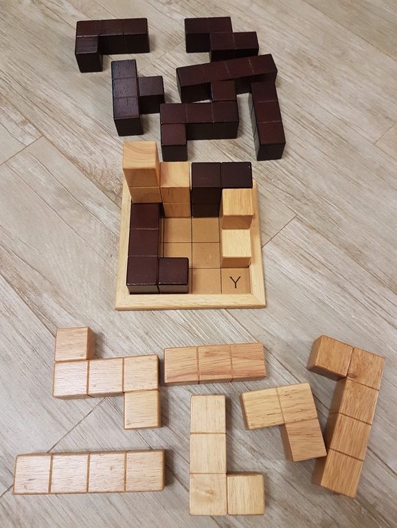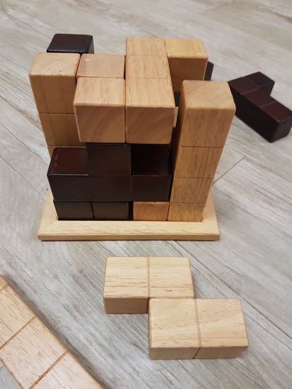 Два игрока поочередно размещают свои блоки на игровом поле, не выходя за размеры куба 4х4. Уже размещенные на поле детали передвигать нельзя. Молодец, кто разместит последним свой блок, что еще попробуй сделать:) Чаще молодец тот, кто свои блоки разместил первым:))) А еще чаще тот, у кого их меньше осталось:) Ох, и нелегкая это работа - расставлять на поле блоки