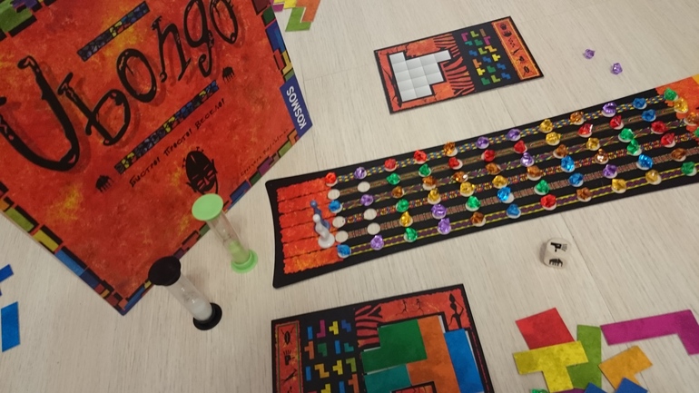 Даже не знаю, почему я проходила мимо Ubongo? Наверное, смущала цена, но, благодаря Танюшиным баллам, игра обошлась всего в 1108 рублей и принесла нам массу удовольствия. Сынулю не оторвать, играет один, играем вместе и даже наш папа далекий от настолок в полном восторге!!! Да и как можно не полюбить такую красоту, жаль, что фото не может передать всей её прелести.