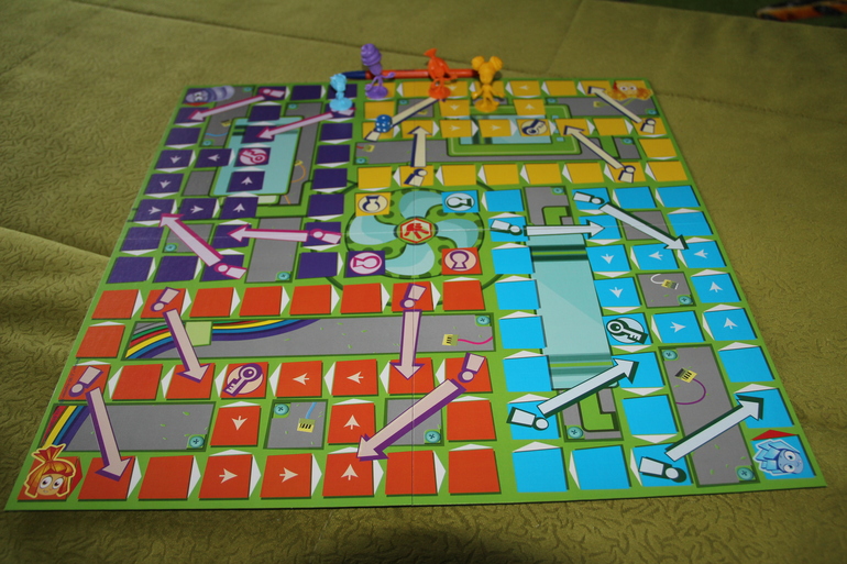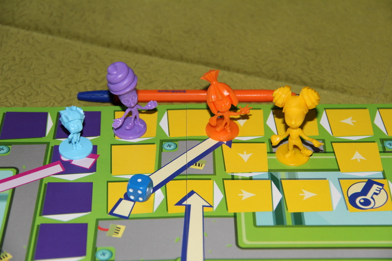 Суть игры: добыть первым ключ и починить вентилятор от пылесоса, но на пути есть ловушки и жучка, которые передвигаются по полю и мешают постоянно, поэтому нам в помощь предлагают добыть Помогатор. Что меня еще удивило, так это два варианта игры. Вариант первый «Кто быстрее?», понятно что каждый играет сам за себя. И вариант второй «Ну-ка, дружно!», где все игроки играют против счетной машинки и во время игры могут помогать друг другу.