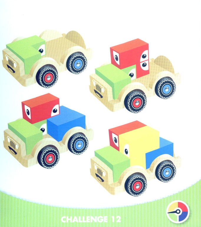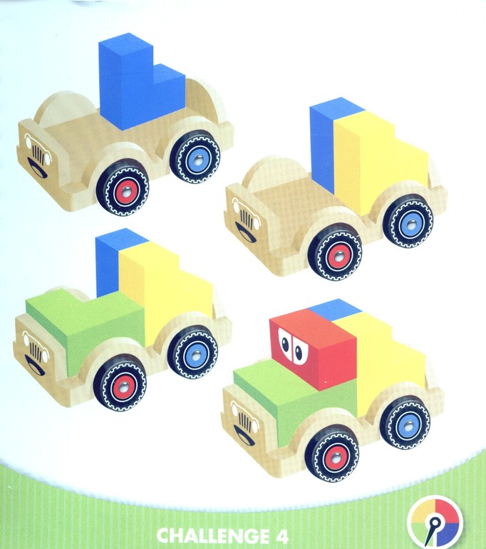 Хочу поподробней показать задания первого уровня. По этим заданиям видно варианты расположения деталей. Казалось бы 4 детальки одинаковой формы, только отличаются количеством и расположением глазок, ну сколько может быть вариантов? Оказалось может быть много.