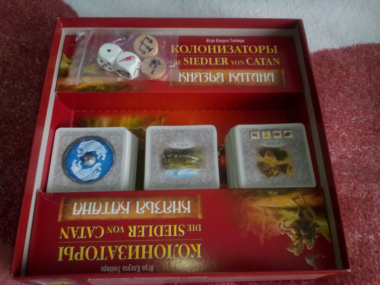 Очень приятный бонус, присутствует сразу три расширения для игры. Мы пока только играли базовым набором ( 94 карты ), дополнения: "Золотой век" 27 карт, "Смутное время" 28 карт, "Эпоха прогресса" 31 карта. Все элементы совмещаются в одну большую стратегию "Поединок князей". Правила на 18 страницах мелким шрифтом, тем не менее все написано доступно, трудностей при разборе не возникло. При выборе ориентировались на видеообзор.