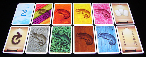 Цель игры - набрать как можно больше карт одинакового цвета (соответственно - больше очков). Но в актив игроку записываются только 3 цвета (любые), остальные принесут в конце игры минусовые очки. На стол выкладываются карты начала ряда (на фото - левый столбик), затем игроки по очереди береут по одной карте из колоды и выкладывают их в любой ряд. В каждый ряд можно положить не более трех карт (при игре втроем и вчетвером, для двоих немного другие правила).