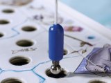 послойно собираем ледовое пространство - игровое поле с отверстиями, на него лист бумаги А4, верхний слой с отверстиями (есть подсказка для того, чтобы не ошибиться в наложении слоев, ведь дырки расположены хаотично. Игровое поле - прямоугольной формы, так вот, с одной стороны уголок обрезан! Как всегда, немецкая предусмотрительность, радует даже в таких нюансах. Т.е. когда Вы накладываете верхний слой, обращаете внимание на этот обрезанный уголок, чтобы он находился с той же стороны, что и на нижнем слое). Теперь немного потрясите всю коробку, чтобы наши рыбки (стальные шарики) распределились по лункам, при этом может получиться так, что в некоторых выемках по несколько рыбок, а какие-то останутся пустыми (если это делать до того, как расположили сверху ледник, то можно запомнить где и сколько рыбок находится. Опять-таки, тренировка памяти 🙂 ).