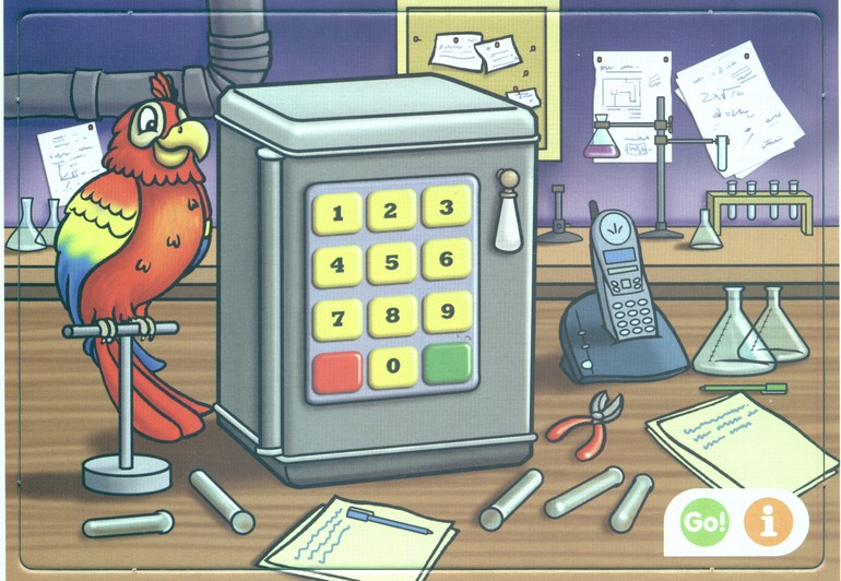 Взломай сейф профессора Мэда. Тебе нужно набрать правильную трехзначную комбинацию цифр и подтвердить ее, коснувшись зеленой кнопки. Красной кнопкой ты можешь отменить ввод цифр. Действуй внимательно. Если ты три раза введешь код неправильно, сработает сигнализация.
