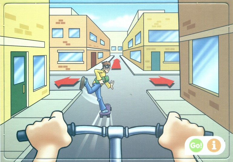 Сообщник профессора Мэда украл ценную вещь, и тебе необходимо его поймать. Полицейский агент, находящийся в вертолете, сообщит тебе, в каком направлении грабитель движется на своем скейтборде. Каждый раз, когда ручка tiptoi будет называть направление, дотрагивайся до соответствующей стрелки на карте этого места преступления. Поторопись, иначе ты упустишь вора и провалишь спецоперацию.