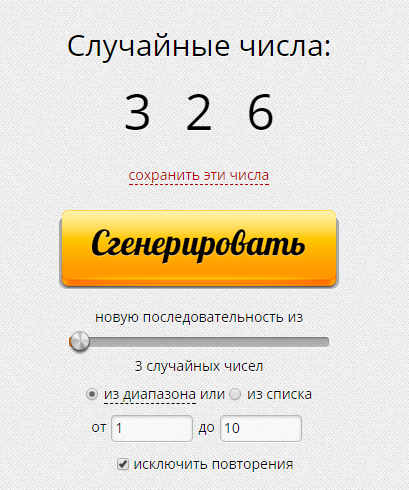 Пришло время для розыгрыша. Участников, верно ответивших на все вопросы, - 10 человек. Запускаем знакомый нам генератор случайных чисел и...![]()