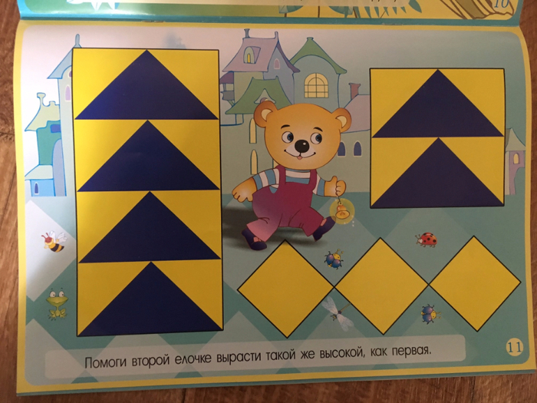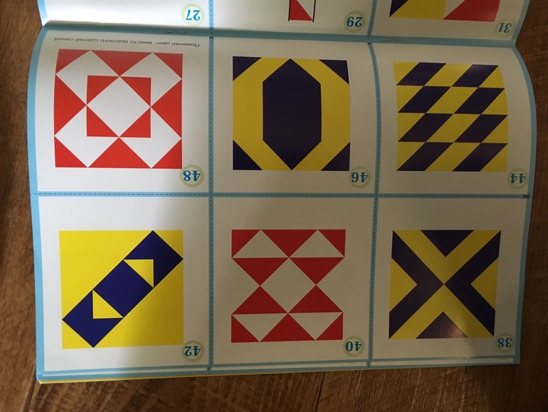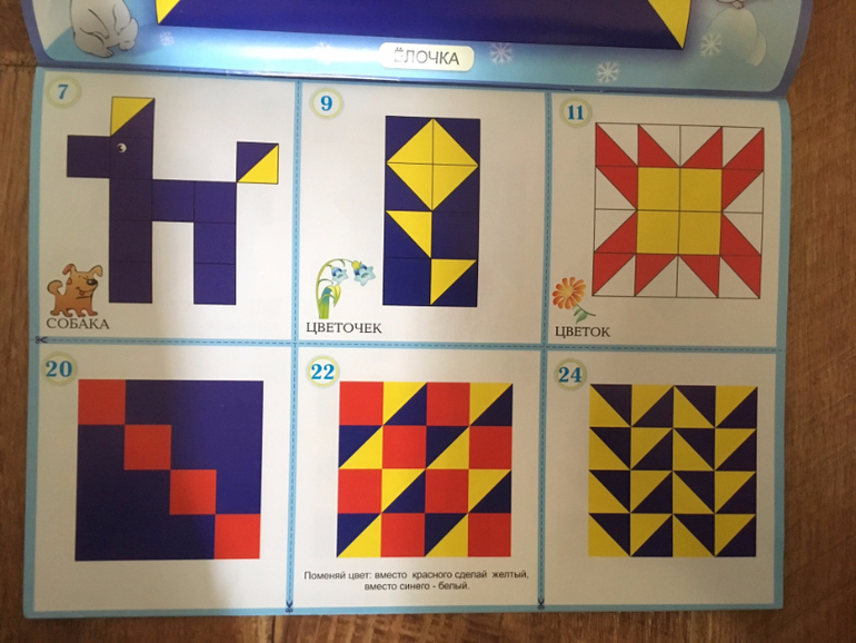 И еще более сложный уровень - выложить, но не на шаблон, а глядя на уменьшенный вариант. И есть такие задания, где и взрослый голову поломает.