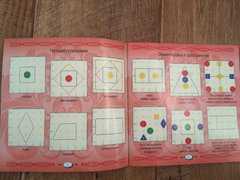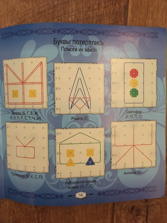 Задания очень разные - смотрите ниже по фото. Цель - разместить резиночки на штырьках в соответствии с заданием - тут и на мелкую моторику, и на логику, и на ориентацию в координатах, и на симметрию, и на знание букв, и на геометрию, доли и дроби, и на понятие времени, и буквы. Зависит от Вашей фантазии. Сынуле очень нравится, жалею, что открыли эту игру только в 4 года. На мой взгляд можно и раньше.