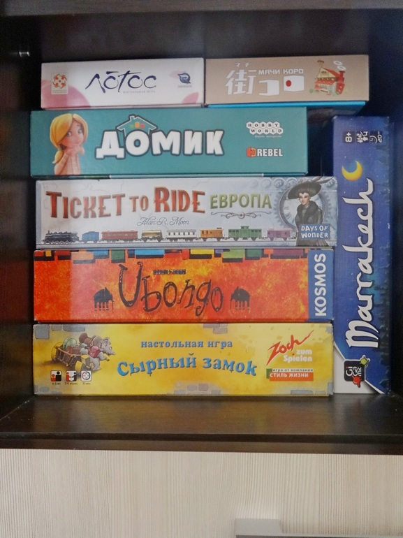В три новые и Билет на поезд недавно играли. Остальные случайно. Вообще у нас около 90 игр, включая самодельные. Хорошо, что не все в таких больших коробках.