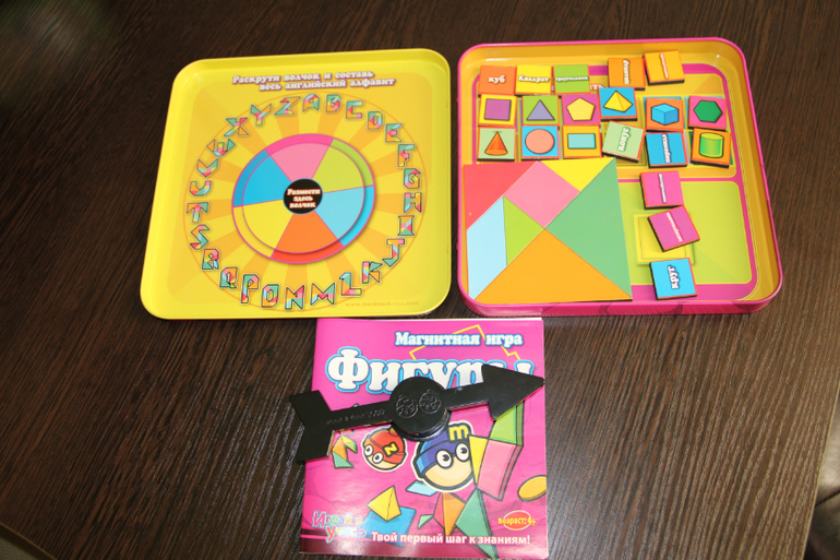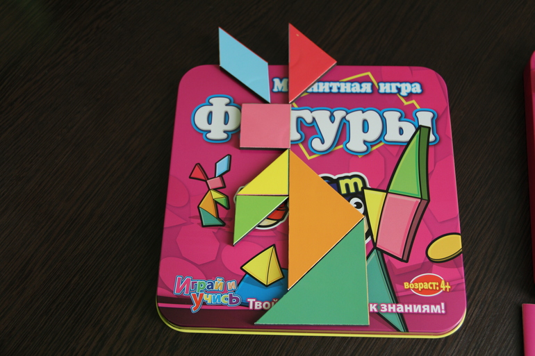 Оказывается в наборе присутствует магнитный Танграм , задания для него и игра с магнитной стрелкой. Помимо предложенных заданий производитель рекомендует на них не останавливаться и поискать дополнительные в интернете. Попробовала собрать несколько фигур и поняла, что собирать надо на обратной стороне поля.