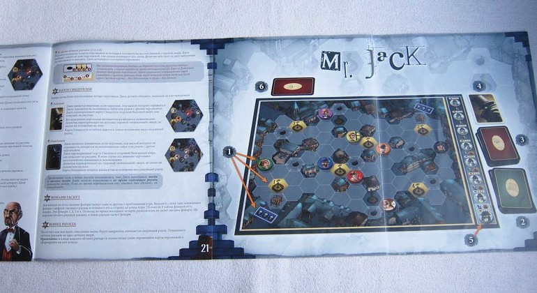 Один из игроков исполняет роль Джека Потрошителя, второй - Детектива. Чья роль проще? Сложный вопрос. Джеку надо не дать себя поймать и успеть покинуть район под покровом ночи, а Детективу надо определить под чьей маской скрывается Джек и поймать его до конца 8 раунда.