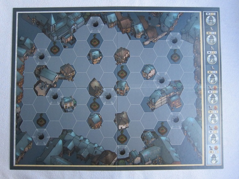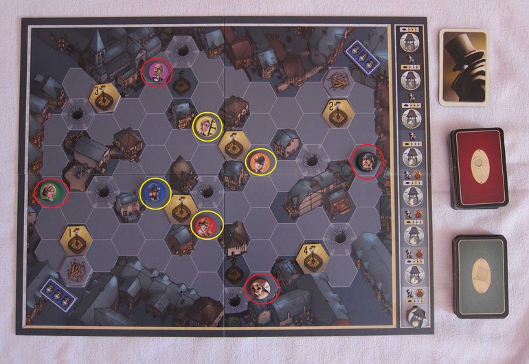 Игровое поле - район Уайтчепел. По правому краю счетчик раундов.