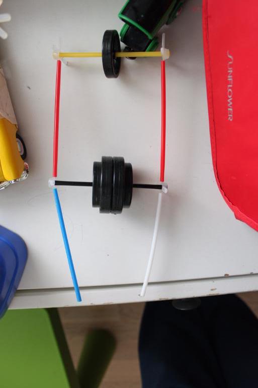 Размеры меньше (кстати, трубочки отличная замена счётным палочкам). Пришлось брать два набора т.к. всего четыре колеса в одном.