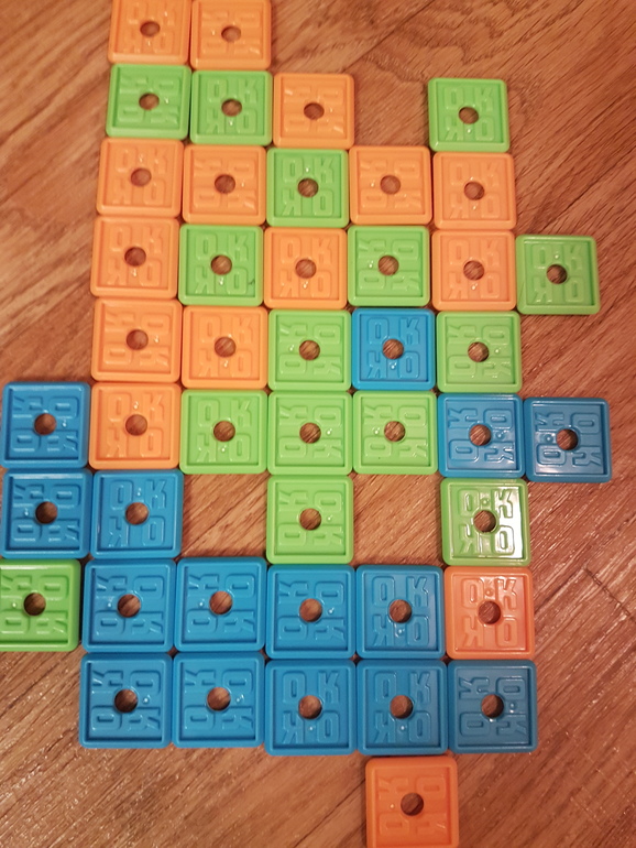 Тогда начинаем перемещать по очереди уже выложенные свои тайлы, но с тем же условием: соприкасать стенками, не углами.