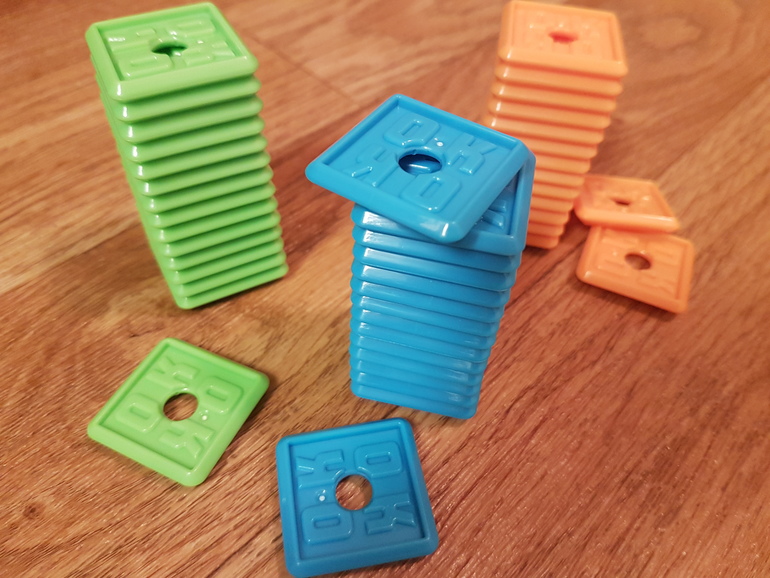 И снова нанизываем все тайлы на свои стержни, зашелкиваем в колечко и игра собрана! Компактно и аккуратно!