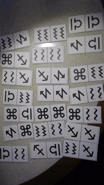 Это обычное домино, которое играется либо по цвету либо по форме. В книге есть третье домино - двух цветное. Я отсканирую всю книгу и выложу.