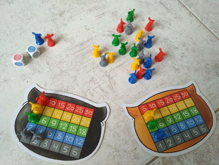 Ещё одна игра на счёт. До недавнего времени она пылилась на полке, а теперь стала востребована это . Сам игровой процесс совершенно простой, нужно ловить мышек!! У каждого игрока морда кота, кубики определяют какого цвета мышки достаются игроку :