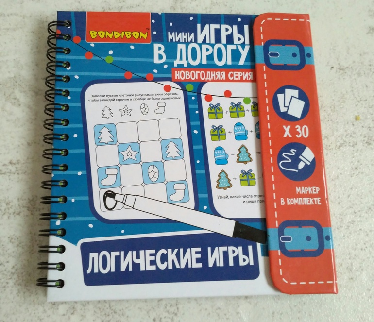 По размеру как магнитные головоломки, в наборе 30 заданий, на плотных двусторонних карточках, и маркер, который легко стирается.