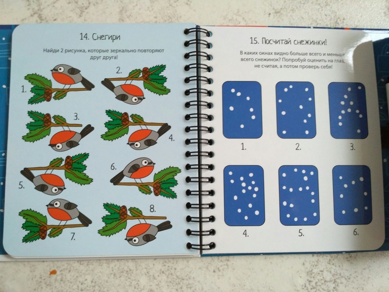Несколько заданий на нахождения одинаковых или разных предметов, здесь нужно найти двух птиц зеркально! повторяющих друг друга.