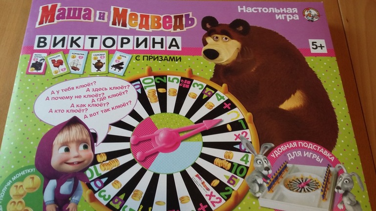 ДидактикаВсем привет. Появилась у нас новая игра: Викторина "Маша и медведь" от десятого королевства. Точнее это аналог игры "Поле чудес" только для малышей и на коробке нарисованы любимые герои :)).