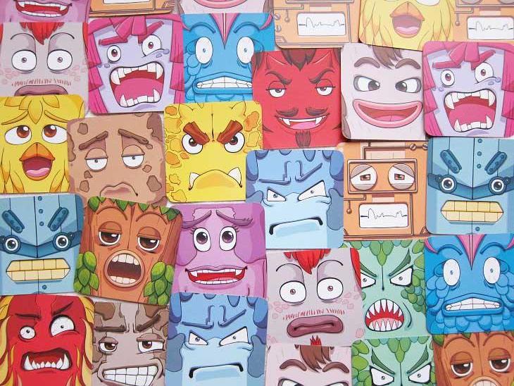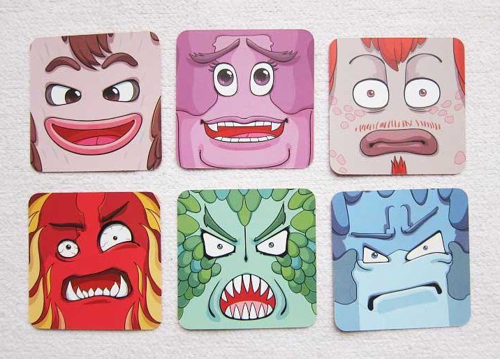 Первый игрок берет секретную карточку монстров и пытается изобразить лицо этого монстра. Остальные участники пытаются отгадать персонажа: накрывают рукой карточку с монстром, что лежит на столе.
