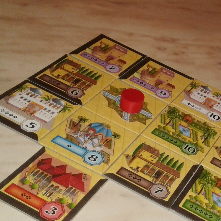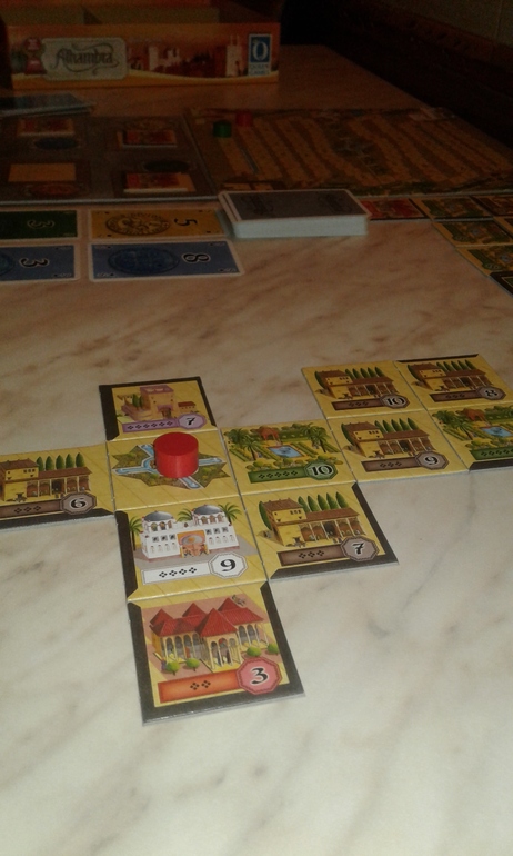 Когда-то давно-давно, когда мы ещё и знать не знали, что существуют какие-то другие настольные игры, кроме раскрученной "ходилки с деньгами", мне попалось безумно красивое поле. Моей фантазии тогда не хватило даже на то, чтобы представить, как это используется, но в душу запало... Теперь я знаю, что то была Альгамбра :)