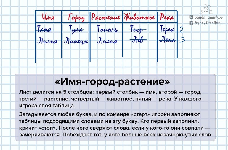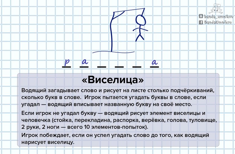 Виселица, и третья игры моего детства !!! спасибо, что напомнили. Только недавно вспоминала, как в виселицу играть, а имя-город-растение совсем про нее забыла. А вы напомнили