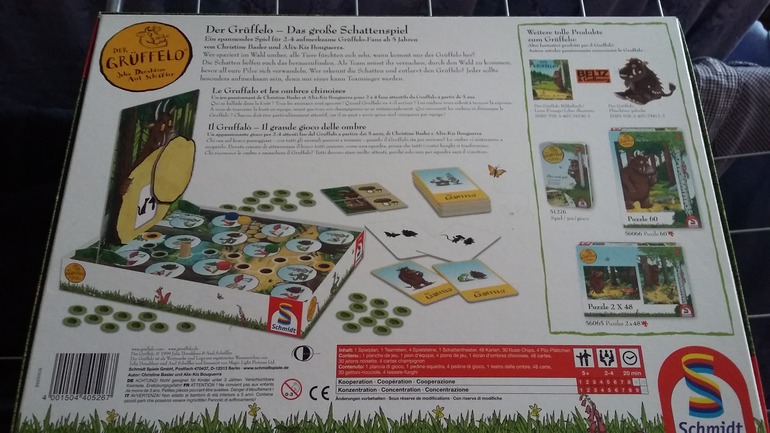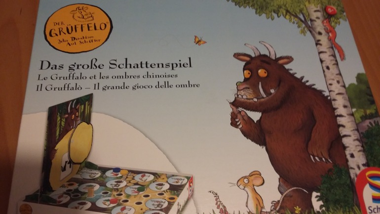 К сожалению в нашей стране я не встречала игр посвященных Груффало. Игра куплена где-то в Германии ;).
