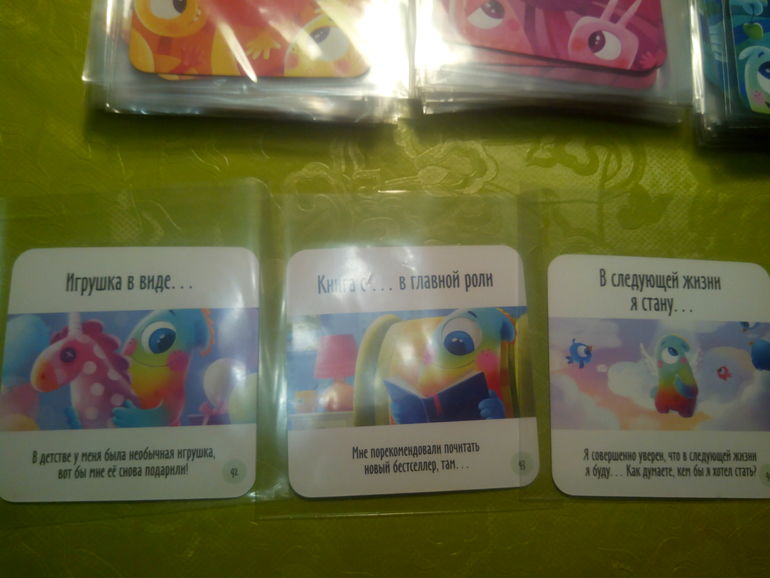Каждому раздается по 3 разные карты (по 1 из каждой стопки). Нам попались такие 3 шт: