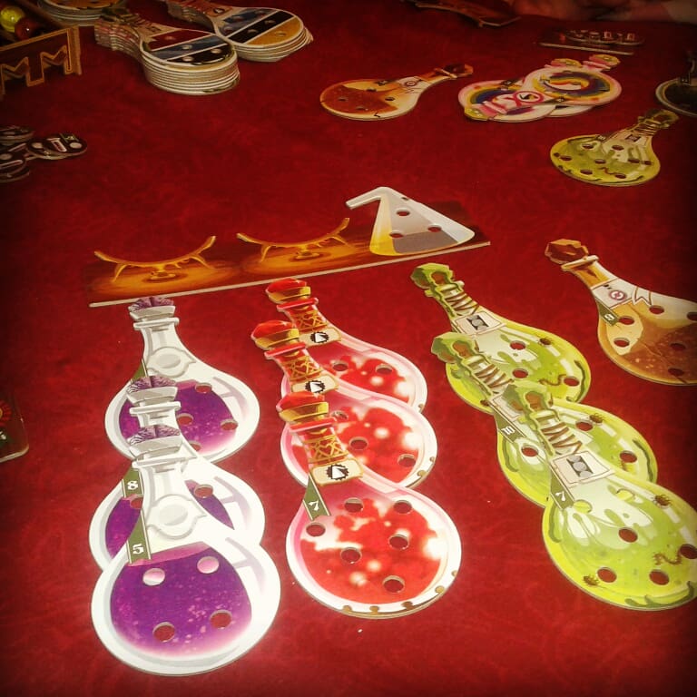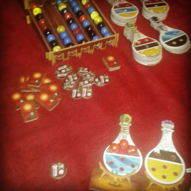 Собственно, реторта нужна для того, чтобы сохранить от 1 до 3 шариков между твоими ходами. И одно из зелий позволяет отнять у другого игрока шарики именно из реторты (а не из руки, как ошибочно напечатано в локализованных правилах).