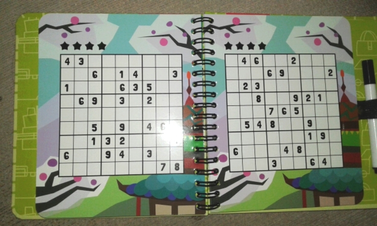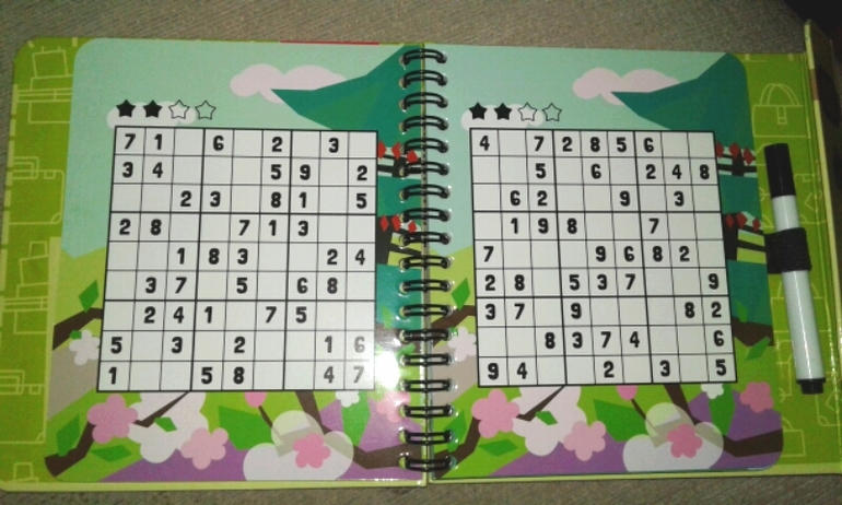 Судоку получается на один раз?То есть если я решаю все сложные варианты, а бывает я целый день решаю, пока не сойдется, то конечно запоминаю комбинации цифр. И решая второй раз вспомню в чем была загвоздка, то есть второй раз их решать уже неинтересно. А так прикольная книжка!