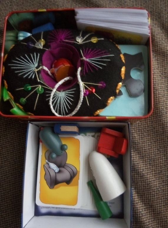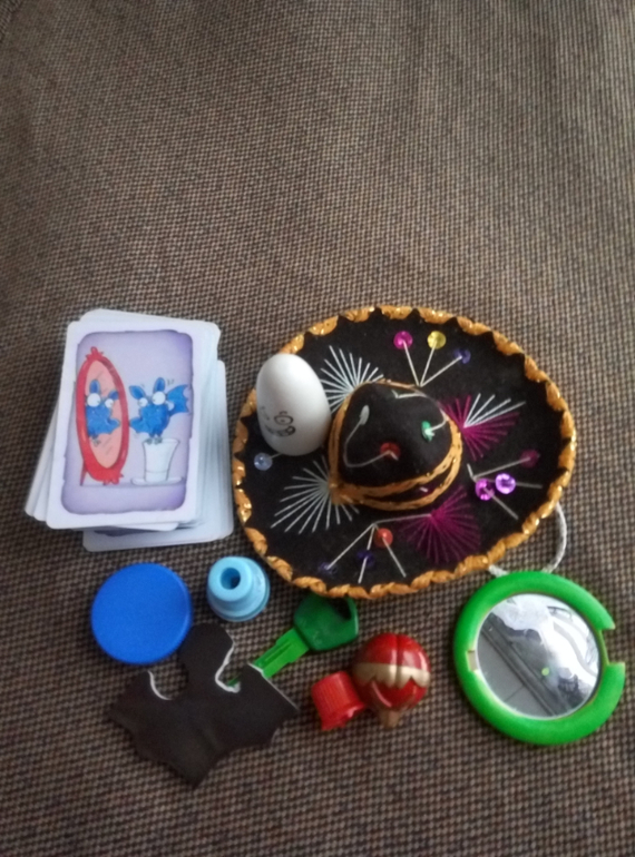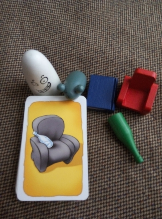 Игра была куплена моим старшим детям, потом играли племянники, а теперь и младший. Боря раньше всех (по возрасту) начал играть в нее. Когда он первый раз попросил, то я сначала опешила. Как ребенку 3,5 лет объяснить правила? Но я схитрила, оставив только 20 явных карточек. Т.е. такие, где были зеленая бутылка, красное кресло, белое привидение или синяя книга. Однажды, он достал эту игру сам со свеми заданиями. Когда вытянул карточку, спросил, а что здесь подходит? Пришлось объяснять. Вот так он начал играть в полную версию игры с 4-х лет.