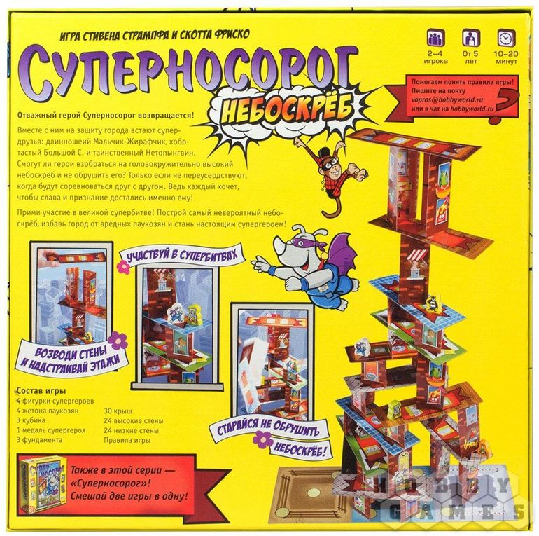 У нас суперносорог, нравится очень, а небоскреб- там сложнее, как поняла, и даже дом по другому принципу складывается+новые фигурки. Но отзывов пока не встречала, лишь фотографии видела. Заявлено, что и как самостоятельная игра и как дополнение.