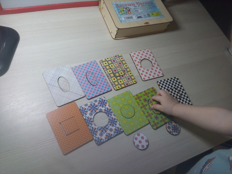 А еще второй день осваиваем "досочки Сегена" от Смайл-декор (спасибо Ире за закупку!). Сначала выдала с кружками и квадратами, потом добавила овалы. Сын со всем справился.