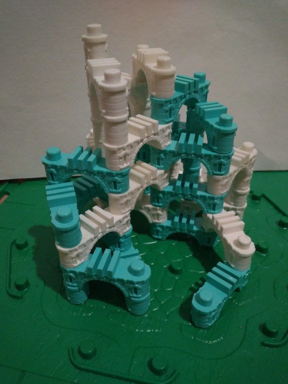 Узнала про нее больше года назад, с тех пор хотела купить, но выбирала что-то другое))) На днях узнала,что игра есть у знакомых, сразу попросила поиграть. Игроки- архитекторы, которые должны построить замок в эльфийском стиле ( несколько архитекторов строит один замок,состоящий из арок, стремящихся в небеса). Могут играть 2-4 человека, у каждого набор строительных элементов своего цвета и фигурка архитектора ( помимо белого и серого цвета, есть приятно бирюзовый и сиреневый)