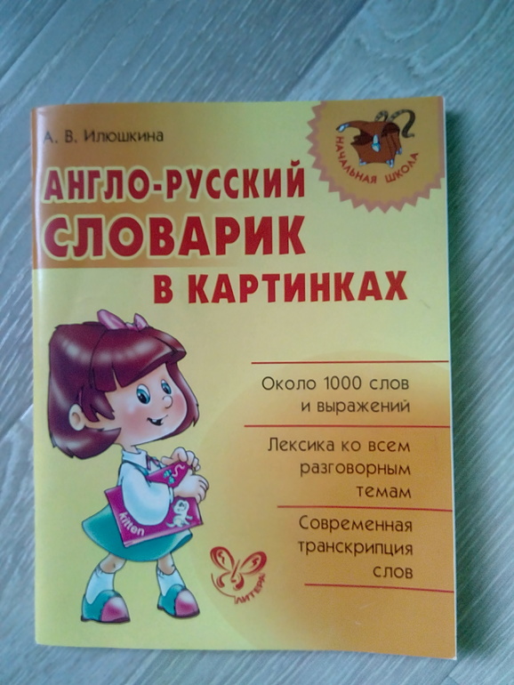 На первом годе обучения учитель делал распечатки из этого пособия. Мне оно нравится. Позволяет учить слова по темам. Таких пособий сейчас много на рынке, есть из чего выбрать.