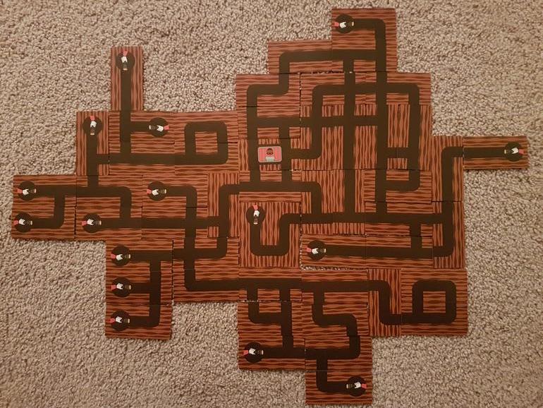 Игра состоит из 69 карточек, одна из которых центральная - у нее с двух сторон два стартовых варианта: открыты 5 или 6 начальных путей.