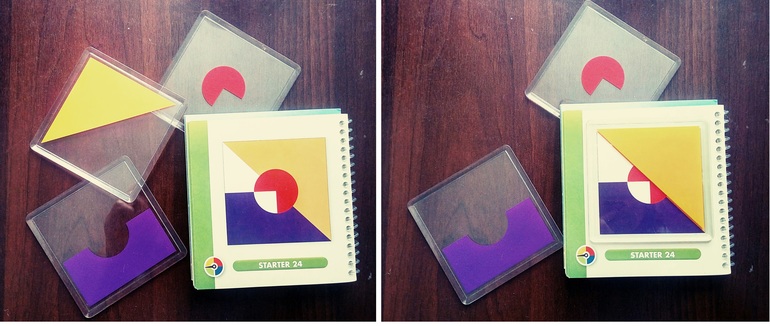 головоломки, логические игрыЛет пять у нас головоломка "Цветовой код", а я только на днях узнала, что оказывается фигуры можно наложить на задание в блокноте (размеры совпадают). Дима мне открыл глаза, когда прикладывал и вертел в поисках правильного ответа. Вот так открытие)