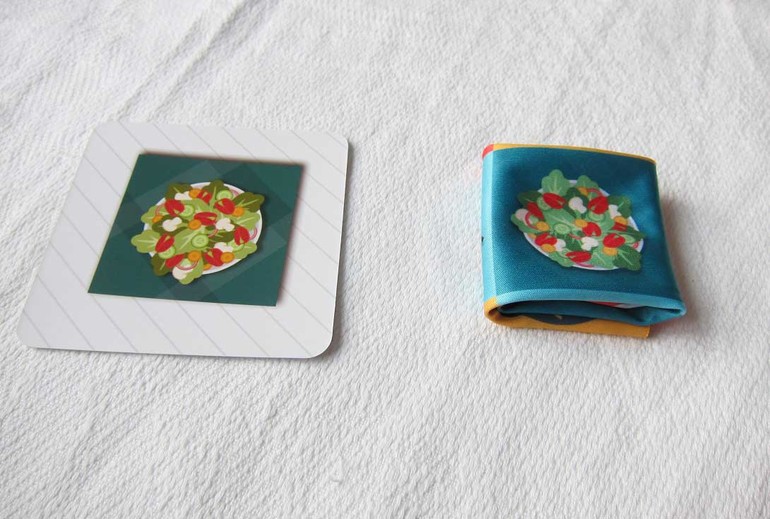 Выполнить заказ - это сложить свою скатерть так, чтобы на ней были видны только те блюда, что указаны на карточке. Наша скатерть-самобранка - это не что иное, как синтетический платочек 20х20 см. На коробке сейчас прочитала - 100% веселиэстер. Теперь понять, почему нам так было весело!))