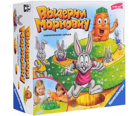 Зайцы бегут за морковкой по лесной тропинке. Фишка игры - возможность «уронить» зайчат в ямки. И эта опция настолько привлекает, что правила порой как-то забываются. На мой взгляд, на этой игре можно смело экономить: неполный перевод правил, высокая цена и постоянное желание превратить игру в игрушку не позволяют мне поставить «Морковке» высокую оценку.