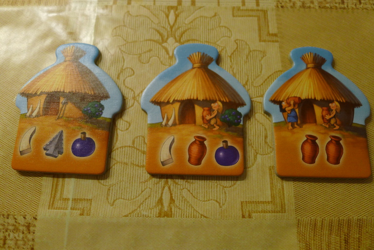 Если в начале игры мы открывали жетоны наобум, так как не знали, где какой находится, то после постройки домика, уже стоит открывать определенные жетоны, собирая необходимые товары. Для успешной игры вам понадобится хорошая память.