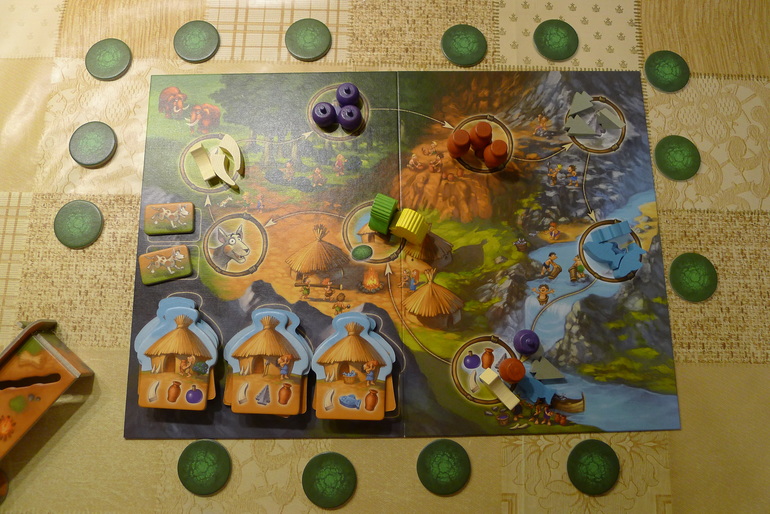 В-третьих, можно использовать не все жетоны, а только, к примеру, 10 из 14. Опять придется поломать голову, как добраться до нужного места. К примеру, жетона ягод нет. Вы находитесь на месте строительства домика. Можно использовать жетон с тремя точками или (если он уже открыт) сначала зайти к собакам, а потом взять жетон с двумя точками.