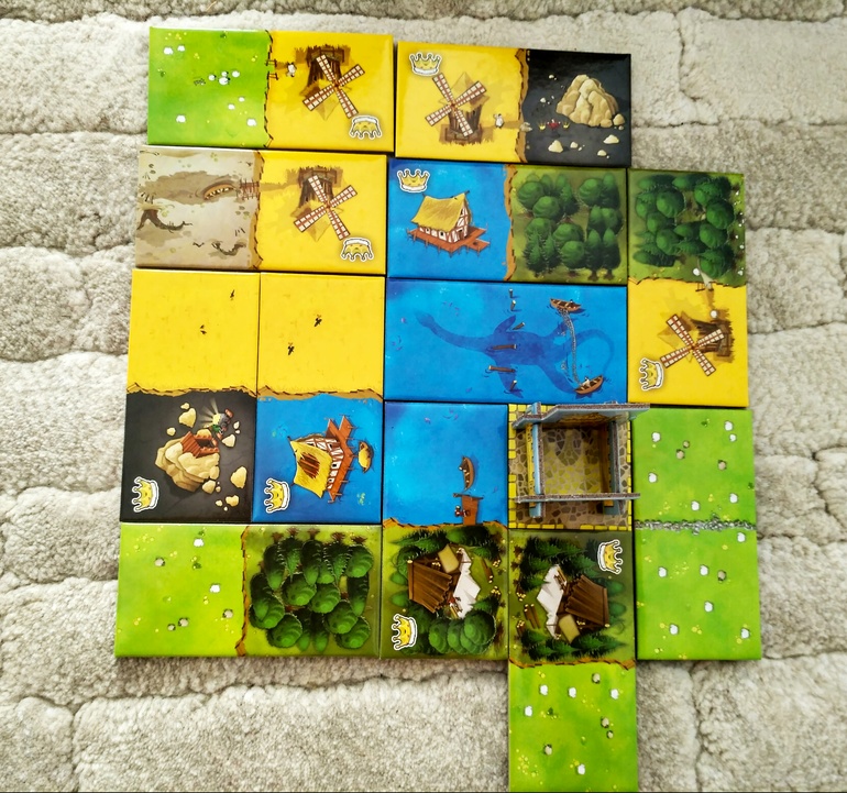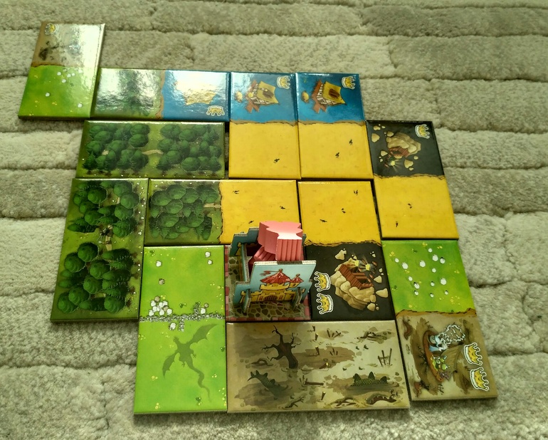 Тактильно приятные компоненты, гладенькие глянцевые тайлы, деревянные короли, коробка с продуманным органайзером !!