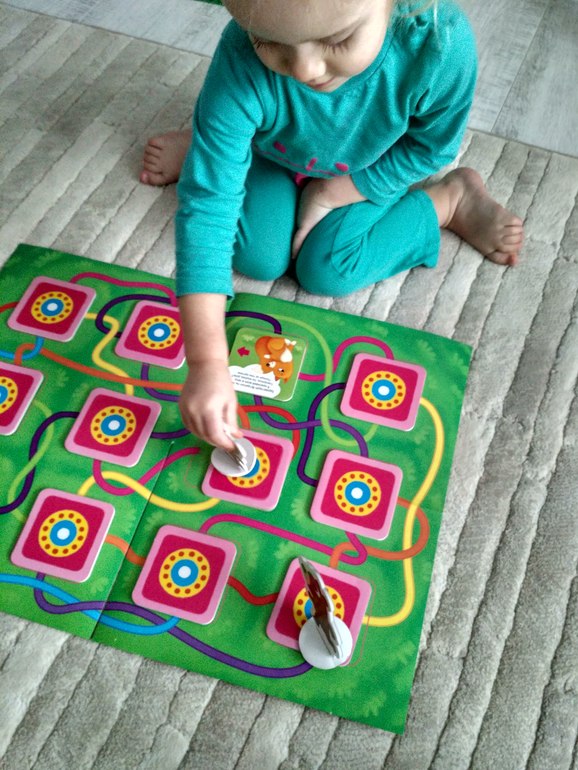Так как карточки раскладываются в произвольном порядке и ракурсе, стрелочка может быть с любой стороны. Но бывает что карточка на которую указывает стрелочка уже открыта, или занята и тогда приходится импровизировать. Особенно часто это в середине игры случается. А так как малыши любят чёткие правила, эта вариативность иногда напрягает.