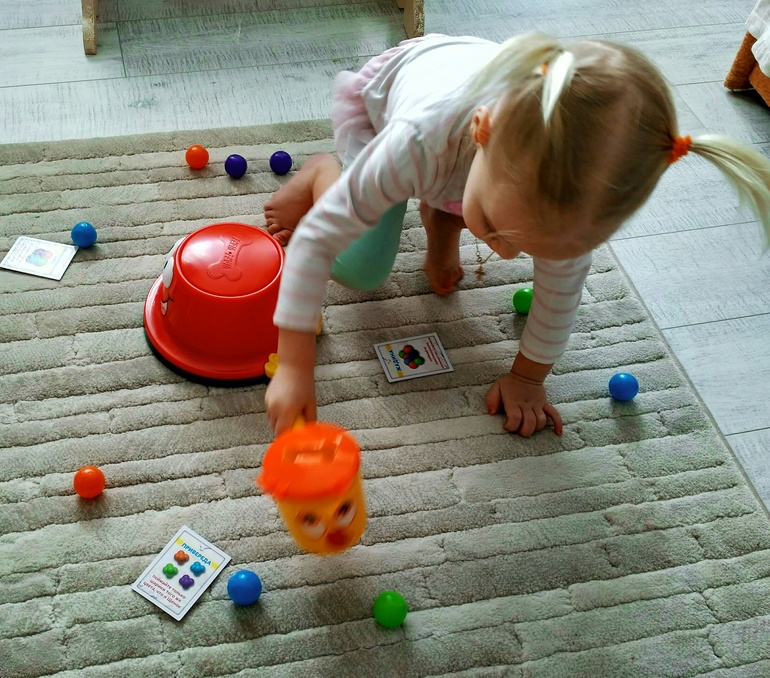Правила игры подразумевают, что нужно собирать определённые шарики, в зависимости от задания. Попробовав разные сценарии, мы поняли что играя с Дашей каждый будет собирать свой цвет. Малыши не любят когда в игре меняются условия, им нужна стабильность, тогда всем будет спокойнее.