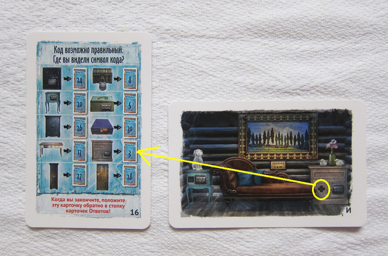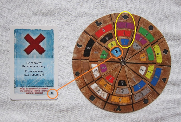 Когда у вас готов ответ - а это будет всегда код, вы водите его на декодере и смотрите соотвествующий номер "Карточки ответа". Карточек ответа будет три вида: с красным крестиком (это значит вы ошиблись), вторая (что на фото ниже) и третья (в которой будут дальнейшие инструкции).