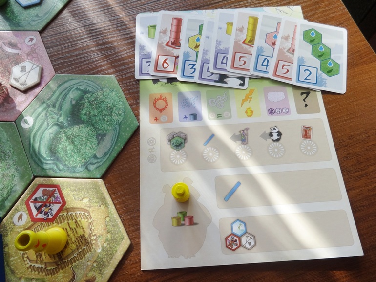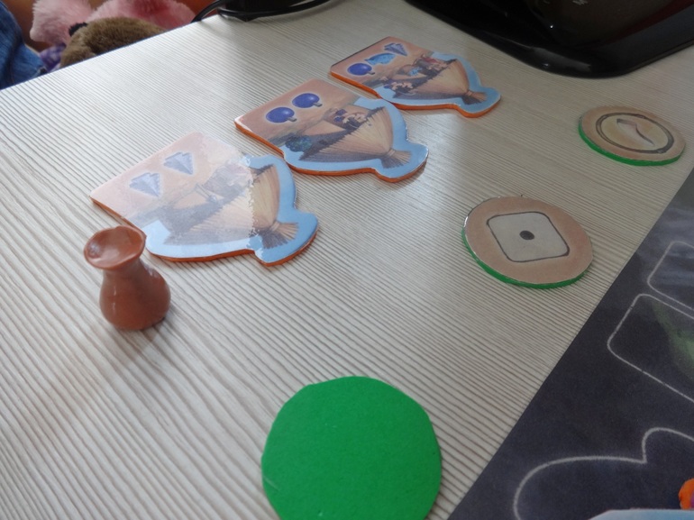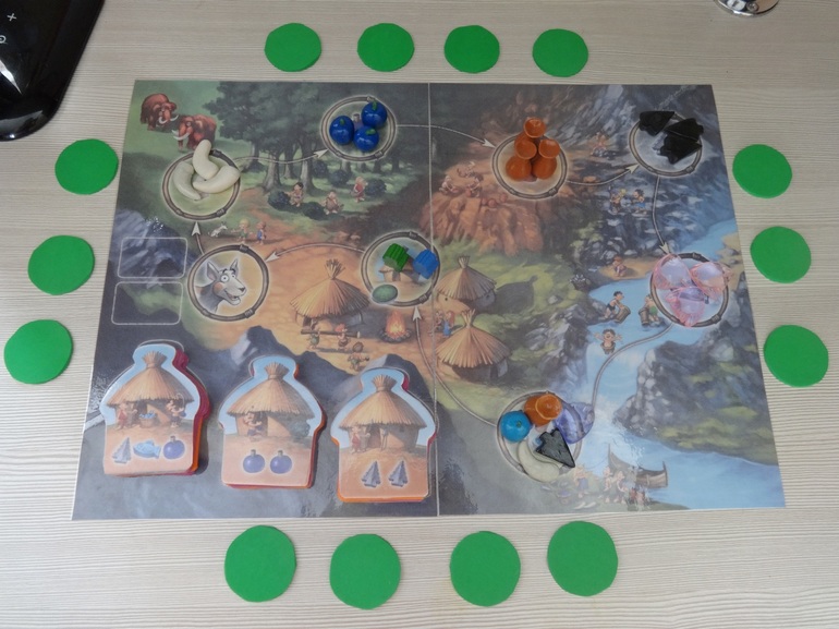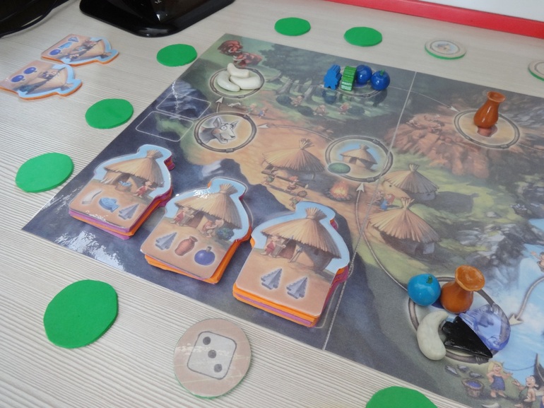 а я осталась совсем без хижин, но с ресурсами, которые так и не смогла потратить, потому, что не помнила, где же жетон с хижиной (дочка постоянно его перекладывает) или не успевала взять нужную хижину.