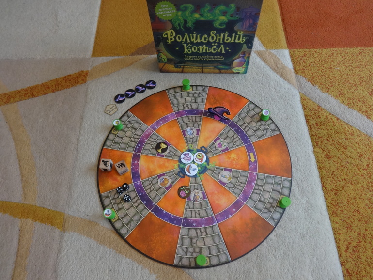 Хочу написать про игру Волшебный котел. Полноценный отзыв писать не буду, т.к. в сообществе уже есть несколько подробных отзывов. Мой отзыв немного наоборот, игра оказалась намного лучше, чем пишут в интернете. Купила игру почти случайно, под действием эмоций. Если бы сейчас рассматривала игру к покупке, то, наверно бы,не купила, потому что большинство отзывов либо нейтральные, либо отрицательные. Претензии в основном к качеству и простоте(скукоте) игры. С нашей стороны хочу полностью опровергнуть каждое из этих утверждений. Может нам повезло с коробкой, но качество на 200%, более того одна из самых качественных наших игр. Все на местах как приклеенное, шляпа колдуна намертво держится в держателе, кубики приятные, поле нигде не расслаивается даже чуть- чуть, сочные цвета, ну вообще никаких претензий. Что касается интересности игры, то драйв от игры огромный. Игра побила все наши рекорды, переплюнув по частоте доставания и восторгу даже Коварного лиса. Да, она не сложная, в полной мере рандомная, но как же увлекательно выкидывать правильный набор кубиков и варить волшебное зелье, чтобы победить колдуна, который бродит кругами вокруг нашего волшебного котла, стараясь помешать нам) Какой восторг испытывает ребенок, когда последний из трех ингредиентов отправляется в котел, и колдун повержен. Играем в один заход по два- три раза, игра достается почти каждый день уже как минимум месяц.